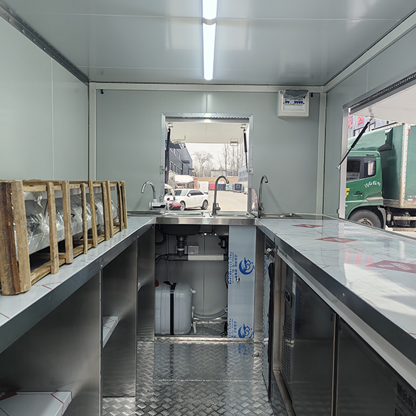 - The service window is directly connected to the internal workbench, enabling fast food preparation and reducing customer wait times.