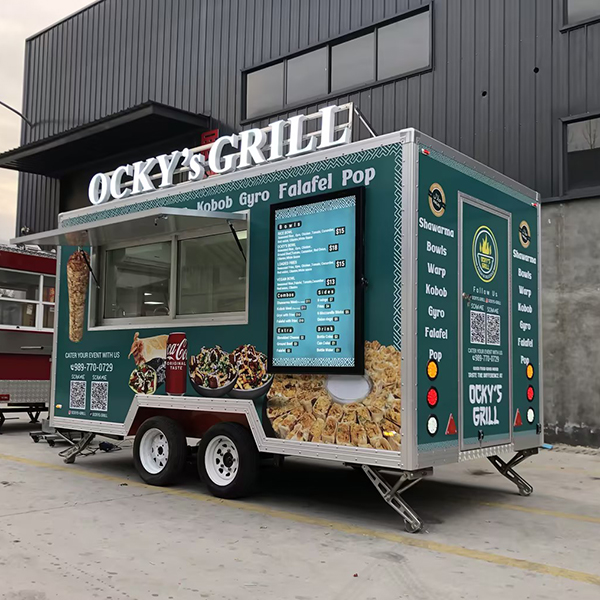 • The 13-foot square-box design maximizes internal operational space, while the dual-axle wheel configuration enhances load-bearing capacity (capable of accommodating heavy equipment such as deep fryers, ovens, and commercial refrigerators);
