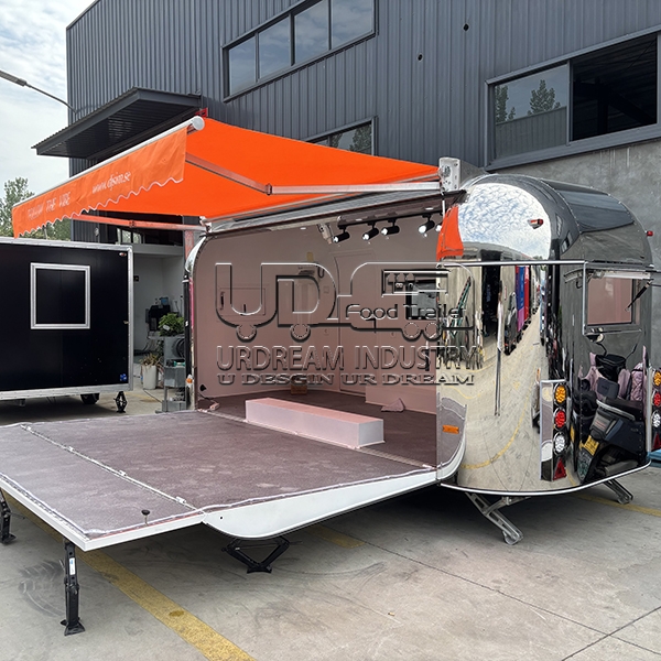 The 13ft mirror airstream stage trailer features a highly reflective, mirror-like exterior finish that sets it apart from traditional stage trailers. This eye-catching design not only adds a touch of glamour and sophistication but also creates a sense of spaciousness and uniqueness. The trailer’s compact size of 13 feet makes it easy to tow and maneuver, while still providing ample stage area when deployed.