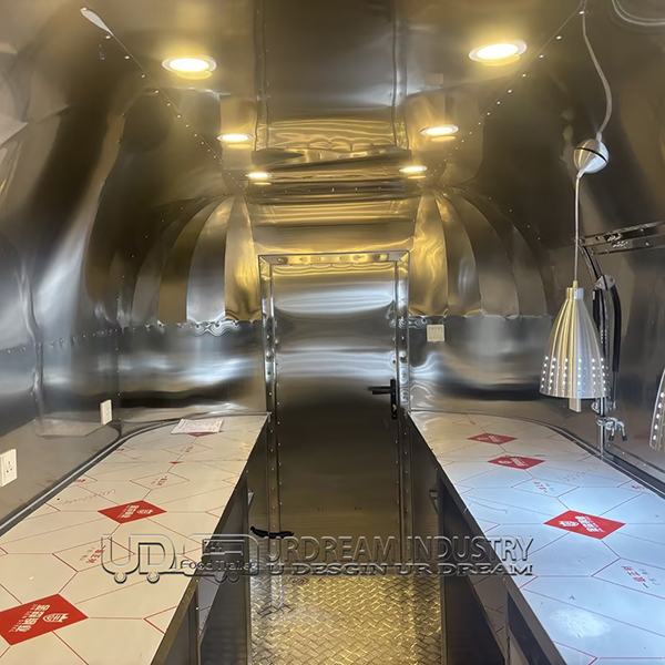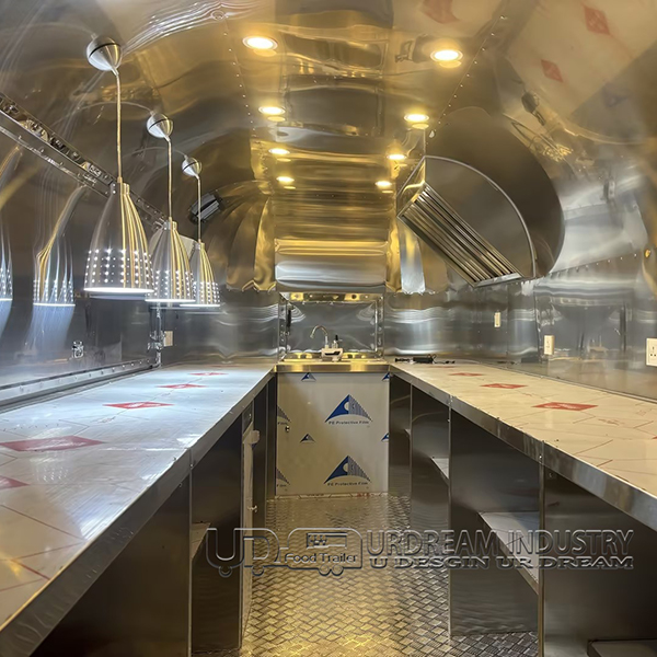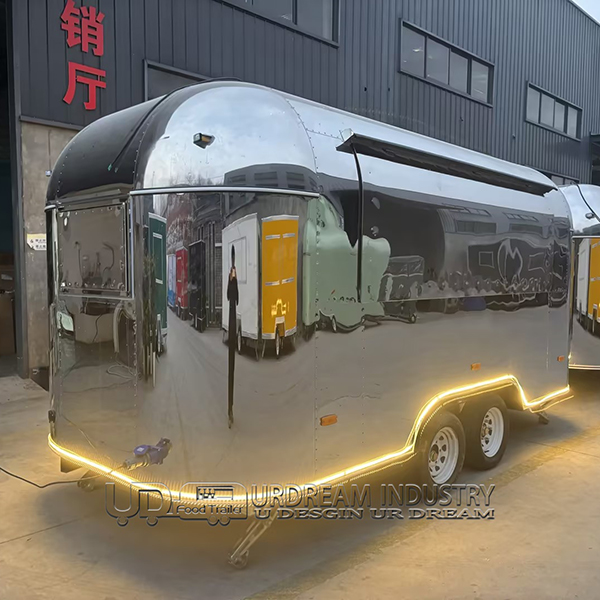 The 15ft mirror airstream food trailer is a sleek and modern mobile catering unit that combines the iconic Airstream design with contemporary functionality. Its highly reflective mirror finish not only makes a bold visual statement but also sets it apart from traditional food trailers. This trailer is perfect for vendors looking to attract attention with a stylish and sophisticated mobile kitchen.