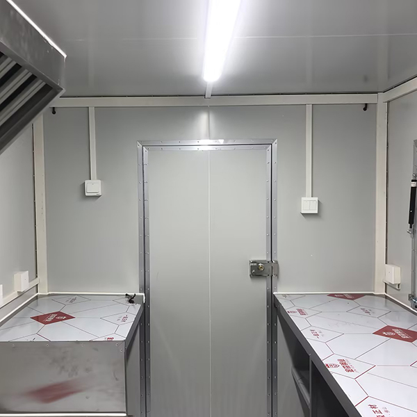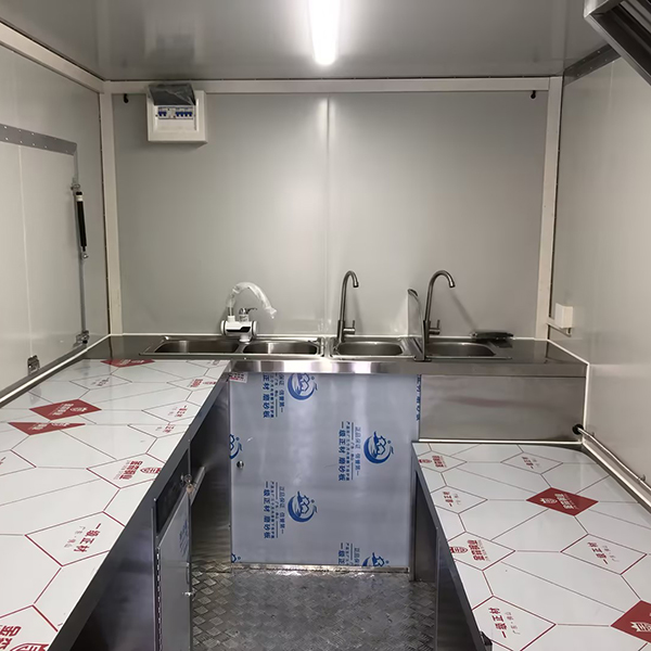 - LED ceiling light (high brightness, covering the entire work area); Wall socket (with waterproof cover, supports small appliances such as blenders and microwave ovens); External power interface (connects to mains power when parked, or optional silent generator power supply).