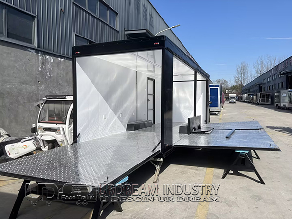 - Easy Setup and Takedown: The trailer is designed for quick expansion and contraction, allowing for efficient setup and takedown at various event locations.